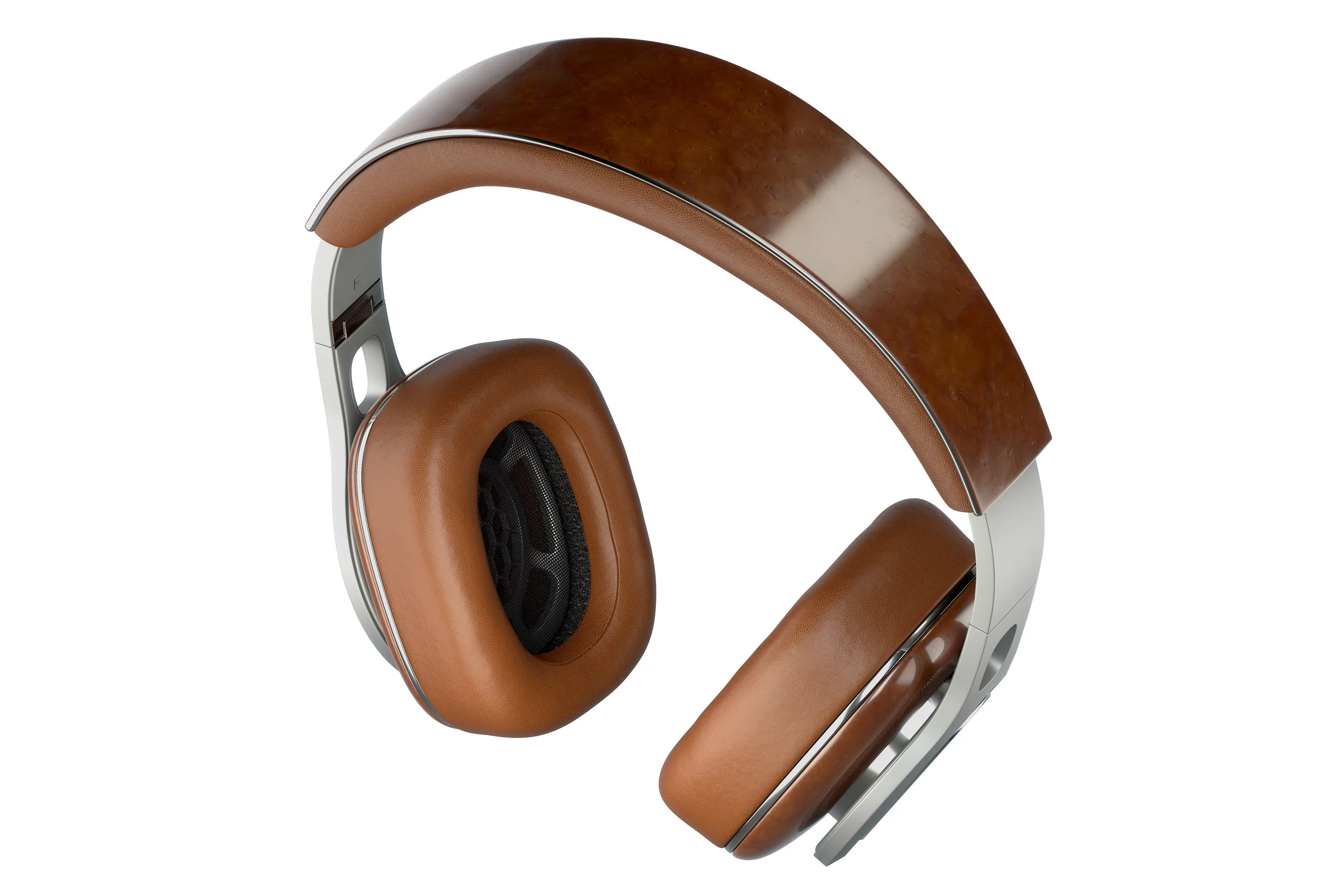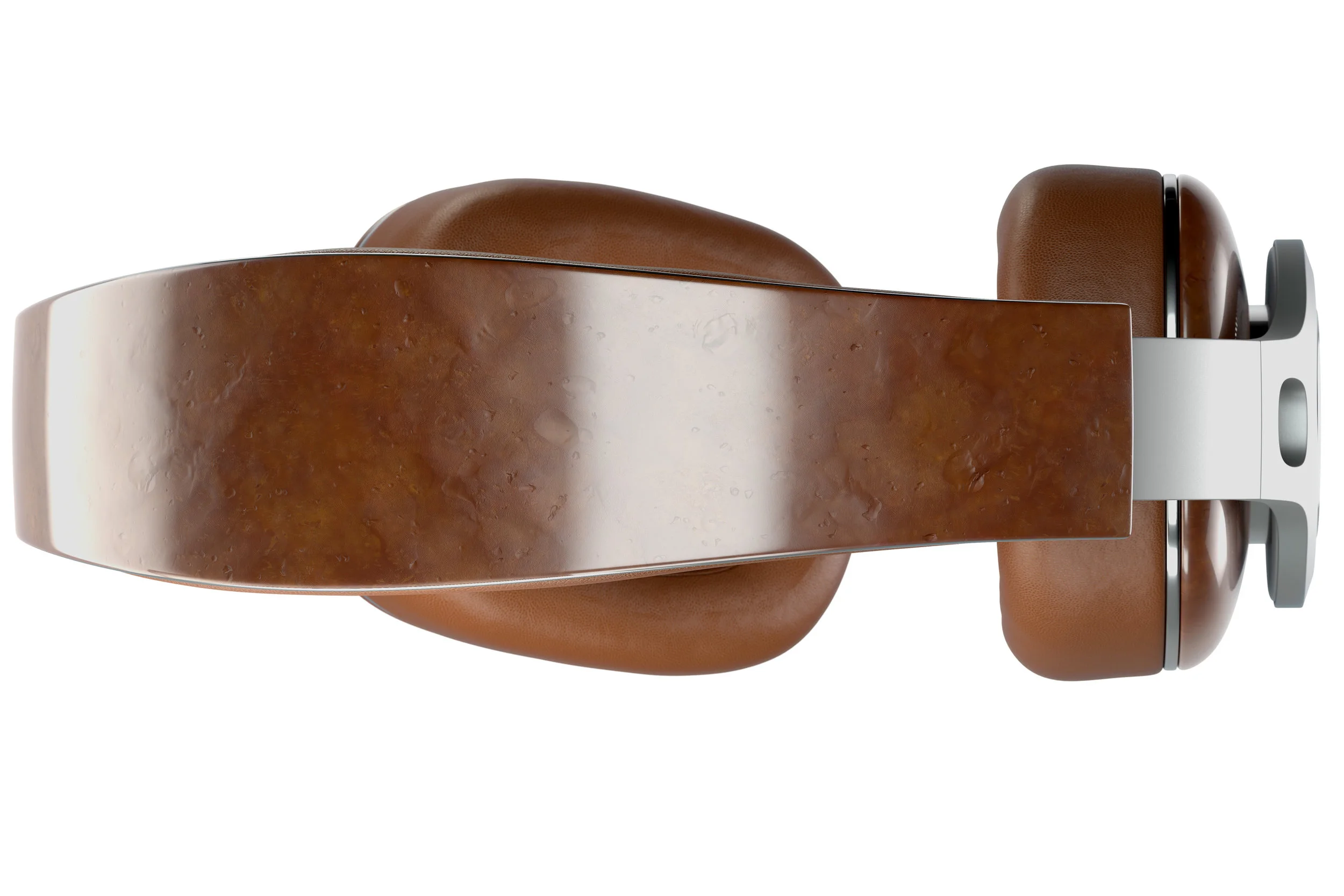 For this project, I wanted to step beyond the scope of standard materials used in headphones. In addition to metal, plastic and leather typically seen in headphones like these, I decided to add the material that resembles the surface of planet Mars and at the same time evokes a feeling of holding a real artisan-crafted product that one can have at home. To achieve this result, a hand crafted polymer clay has been sanded to unveil its raw uneven texture and then covered with a lacquer. While the closeups reveal fine traces of a comb, looking at the headphones from some distance, one can almost see the Martian craters.